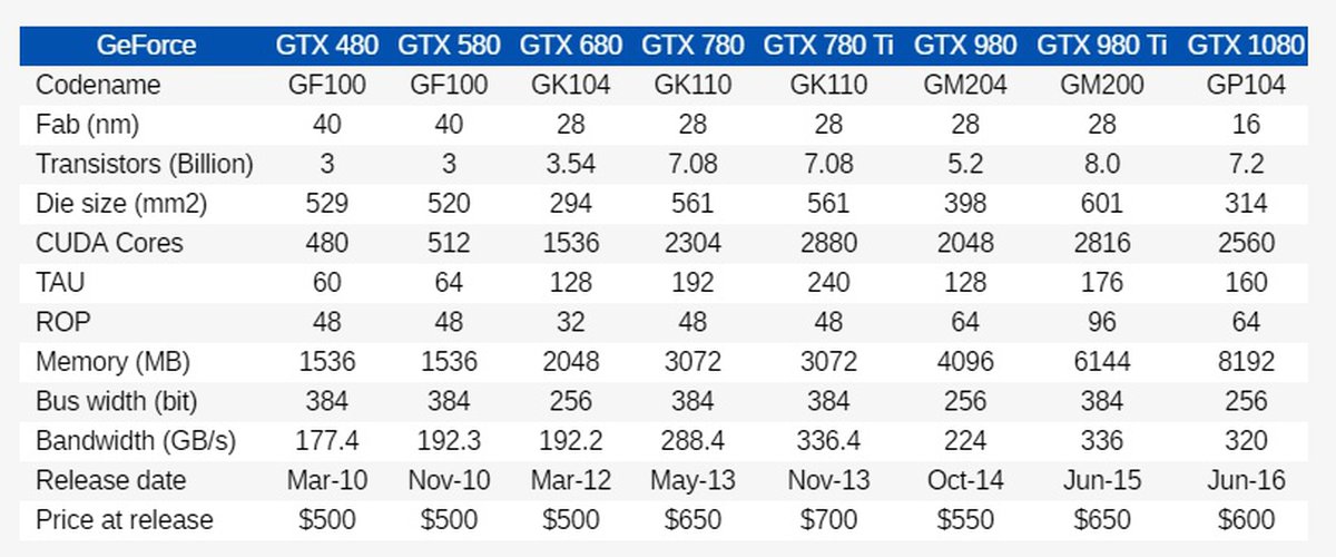 Шесть поколений Nvidia: от GTX 480 до GTX 1080
