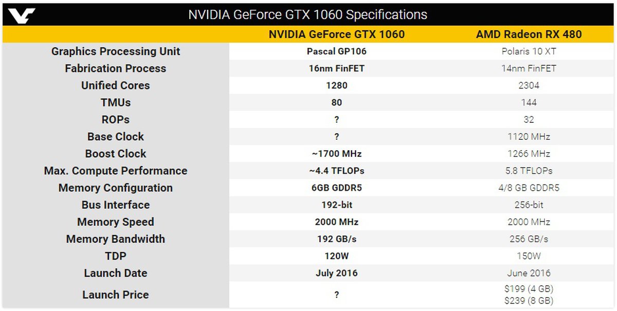 Слух: утечка характеристик Nvidia GTX 1060, карта слегка обходит AMD RX 480