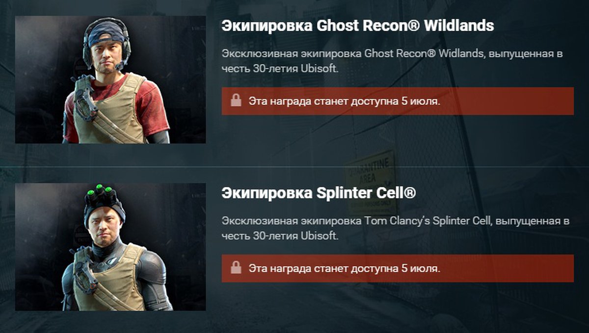 Комплекты будут доступны сразу после завершения сегодняшнего технического обслуживания. Для разблокирования экипировки нужно лишь зайти на страницу The Division в UPlay, перейти в раздел награды и немного поскроллить.