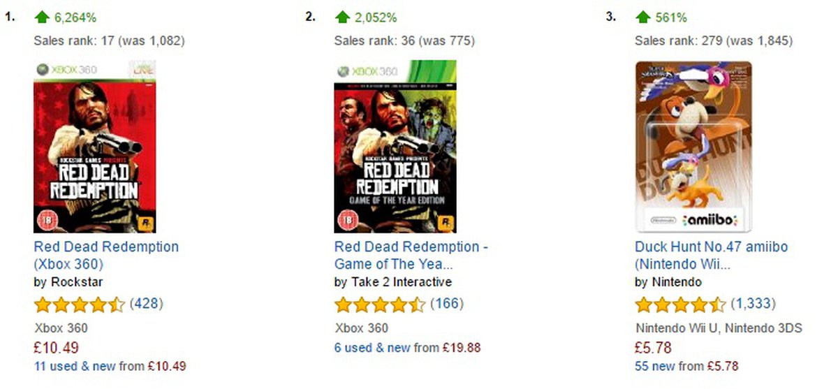 Прямо сейчас версия Red Dead Redemption для Xbox 360 буквально взлетела в топ продаж интернет-магазина Amazon: рост продаж составил 6264% для обычной версии игры и 2052% для GOTY-издания. Отличный подарок для Rockstar и Microsoft.