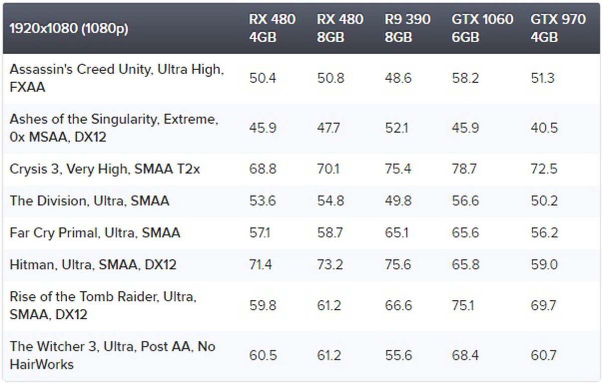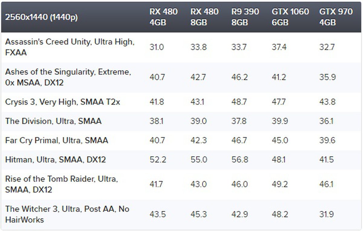 Даже в разрешении 1440p максимальная разница в fps между версиями AMD RX 480 c 4 ГБ и 8 ГБ достигала 2.8 кадров в секунду (это был Hitman), а в разрешении 1080p разница еще меньше.