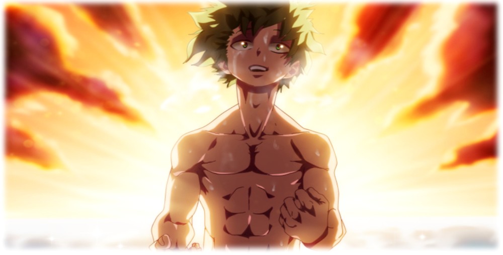 Конечно, тот факт, что каждый здесь имеет супер классные силы также помогает. Большая часть привлекательности данного тайтла состоит в изучении именно способностей одноклассников Мидории, и за просмотром того, как они применяют эти силы в боевой ситуации. А вот собственная сила Мидории супергеройскее некуда (если так можно сказать) ((нельзя)) — он может призвать невероятную силу, особенно в необходимые для этого моменты, но особо контролировать он ее не может, так как его тело не выдерживает такой мощи. Несмотря на то, как Мидория вырос в физическом плане для этой силы, его тело все равно не выдерживает ее, и каждый раз повреждается. Из-за этого юному Мидории приходится опираться в большинстве случаев на его главное преимущество — долгие года изучения супергероев, а точнее их действий в бою. Эти познания научили его использовать множество тактик и принимать быстрые решения в бою.