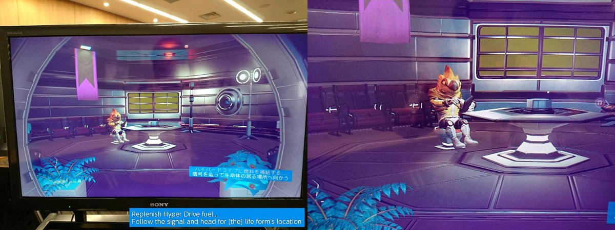Начнем с приятных новостей. Продолжают появляться фотографии с японской презентации No Man’s Sky, на которой разработчики показали финальный билд игры. Сегодня у нас появилась фотография одного из инопланетян-торговцев (кажется, нашему исследователю придется научиться чирикать) и несколько скриншотов от Sony.