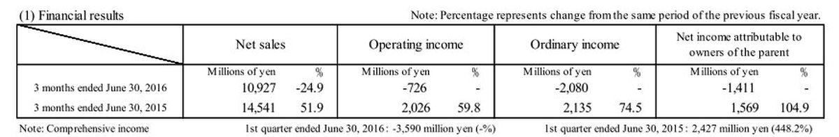 Из отчета Capcom следует, что по сравнению с тем же кварталом 2015 финансового года продажи компании упали сразу на 24.9%, в первом квартале нового финансового Capcom зафиксировала операционный убыток в 726 миллионов йен против прибыли в 2 миллиарда йен годом ранее. Чистый убыток компании составил 1 миллиард 411 миллионов йен.