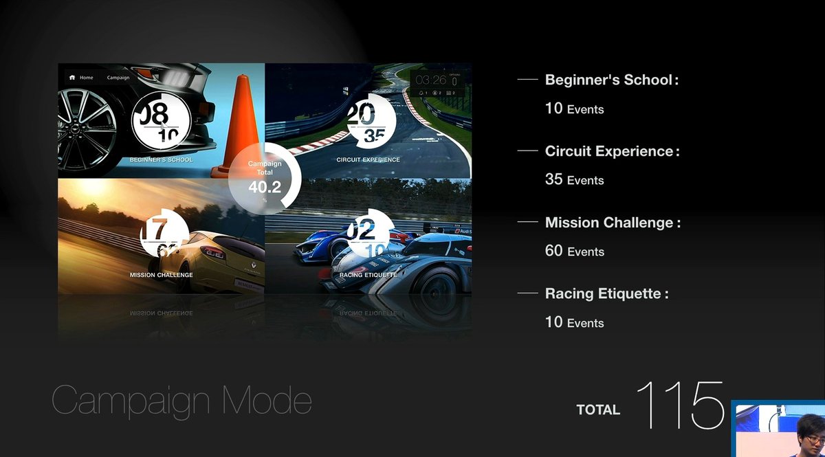 Ранее предполагалось, что в Gran Turismo Sport будет 62 испытания и всего 117 миссий, теперь же Ямаути назвал другую цифру: 60 испытаний и 115 миссий.