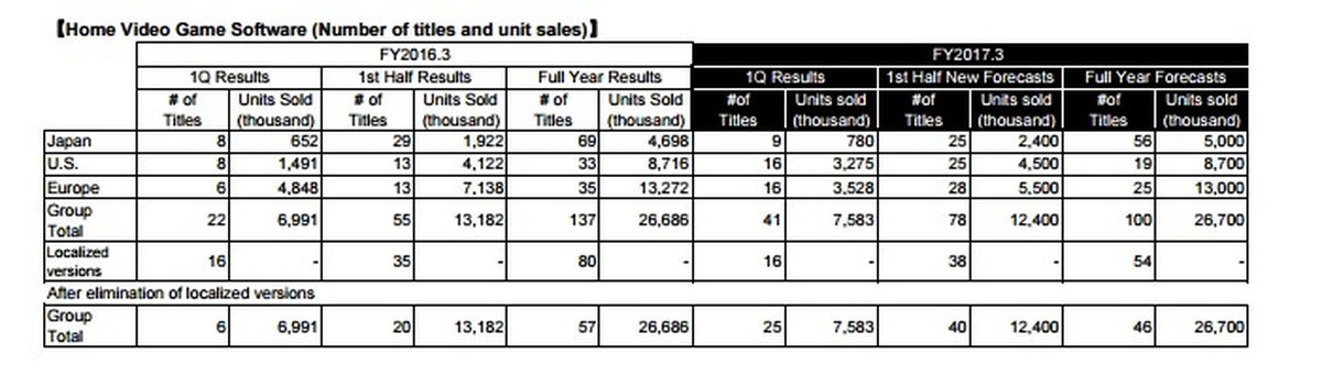 За весь финансовый год компания планирует реализовать 26.7 миллионов копий игр - почти такой же результат (26.686 миллионов) был достигнут и в прошлом году.