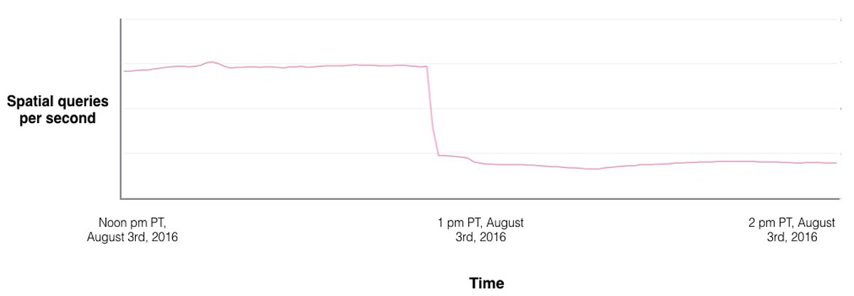 Оказалось, что все эти сервисы создавали серьезную нагрузку на сервера игры, и так едва справляющихся с постоянно растущим количеством игроков. В блоге Niantic приводится график количества обрабатываемых запросов, на котором вы наверняка заметите момент отключения сторонних сервисов.