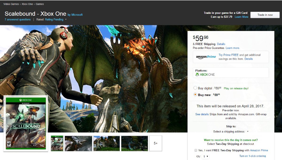 В последнее время Amazon достаточно редко промахивается с датами выхода, так что существует некоторая вероятность того, что Scalebound действительно выйдет 28 апреля будущего года.