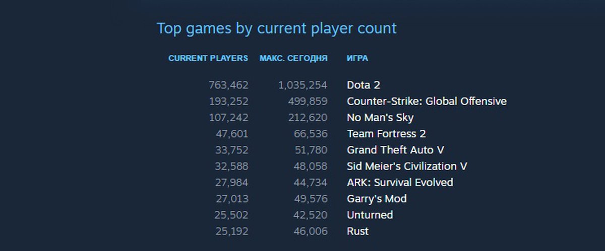 Только взгляните на статистику в Steam. Даже сейчас в No Man’s Sky играет 107 тысяч человек, а в пике в игре находилось сразу 212620 игроков - проект Hello Games замыкает тройку самых популярных игр в Steam, следуя сразу на Dota 2 и Counter-Strike: Global Offensive.
