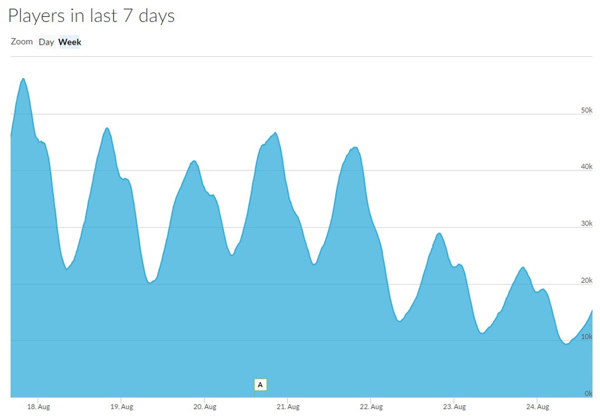 Согласно данным steamdb, в этот понедельник максимальный онлайн в No Man’s Sky не превышал 29 тысяч игроков, во вторник эта цифра уменьшилась до 23 тысяч, а сегодня, видимо, будет еще меньше.