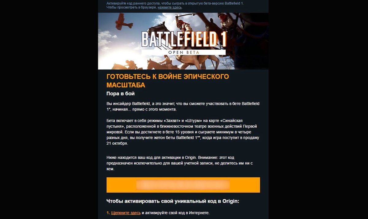Тем временем инсайдеры Battlefield 1, которые должны получить доступ к бете на сутки раньше других игроков, уже изнывают от ожидания, снова и снова обновляя свою электронную почту. Еще бы, 30 августа наступило, а кодов так и нет.