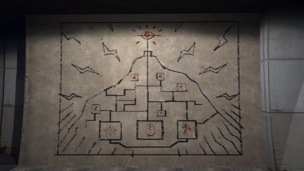 Говоря о секретах, загадках и пасхалках в GTA V, нельзя не упомянуть о Тайне горы Чилиад (сокр. ТГЧ). Это если не самая крупная, то точно одна из самых сложных головоломок в игре. Связана она с названной горой рисунком, который нарисован на стене фуникулёрной станции, находящейся на вершине Чилиада.