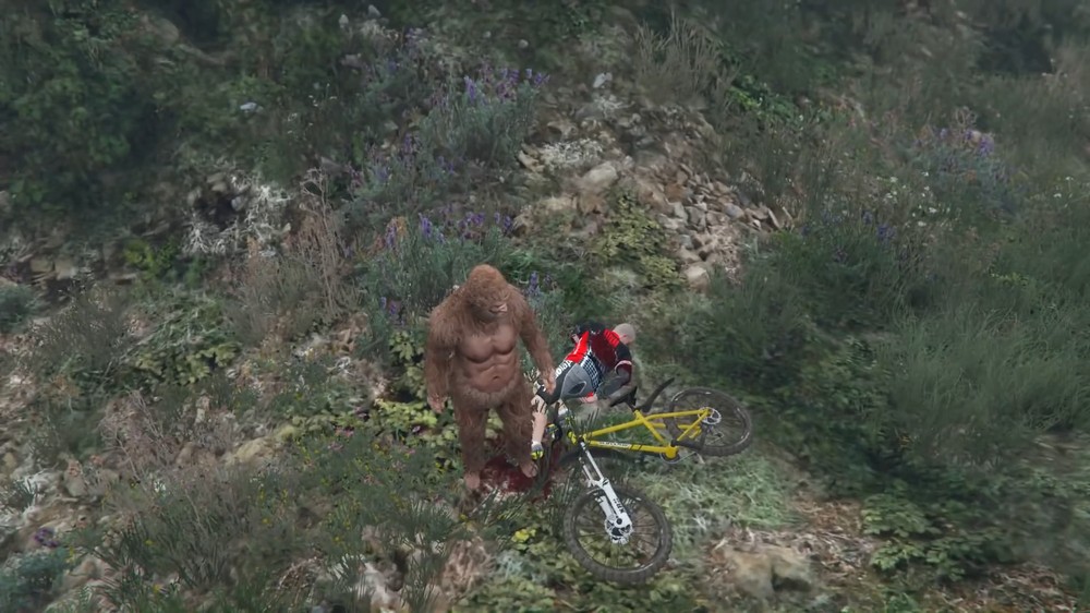 Раскрыт секрет со Снежным человеком был совсем недавно зарубежными игроками. Если вы играли в GTA V, то, возможно, находили лофофоры – галлюциногенные грибы, съедая которые, персонаж превращается в каких-либо животных. Как оказалось, если пройти игру на 100%, а затем прийти в туманную погоду в определённое место и в определённый день недели, то персонаж может обнаружить на земле особую лофофору, съев которую вы превратитесь… в того самого Бигфута! Всего таких грибов будет 7, а после их съедения предстоит сражение с оборотнем.
