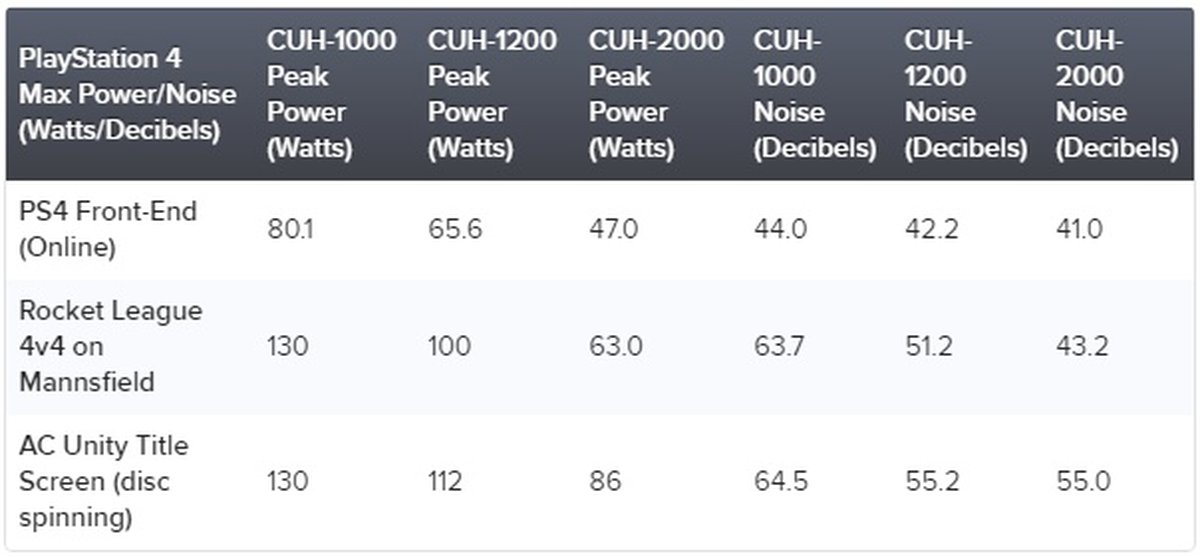 Самое заметное отличие PS4 Slim от старых версий PlayStation 4 - пиковая потребляемая мощность. В Rocket League PS4 Slim потребляет вдвое меньше энергии, чем PS4 ревизии CUH-1000 (63 ватта против 130 ватт), разница с PS4 ревизии CUH-1200 также значительна: 63 ватта против 100 ватт.
