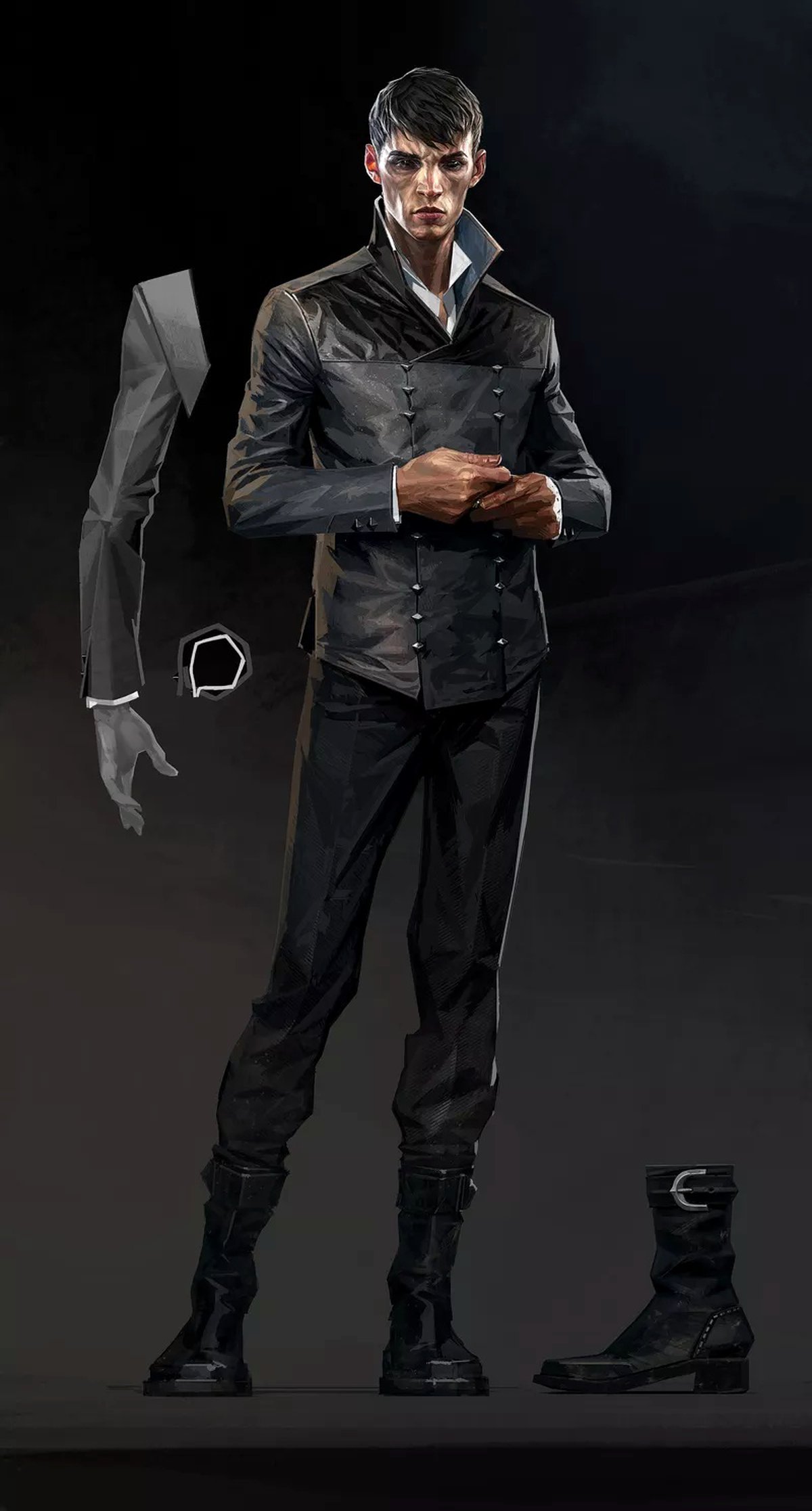 Между событиями двух игр прошло 15 лет, мы хотели изменить облик Корво, чтобы показать пролетевшие годы, однако при этом нужно было и сохранить характерные черты первой игры. Мы сосредоточились на новом костюме, не только отражающем положение Корво в обществе, но и подходящий убийце, которым он вновь становится в начале игры. Его наряд хорошо скроен и обеспечивает отличную маневренность во время использования способностей. Маска Корво также изменилась - мы изменили материал, а размер был точнее подогнан к лицу героя.
