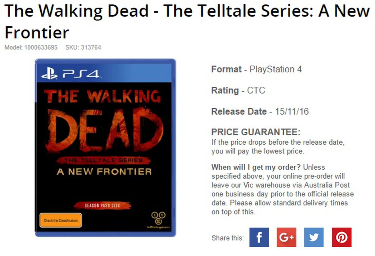 Возможно, первый эпизод The Walking Dead: A New Frontier будет представлен в середине ноября. Если верить британской версии Amazon, выход игры назначен на 18 ноября, австралийский магазин JB Hi-Fi дает похожую дату - 15 ноября.