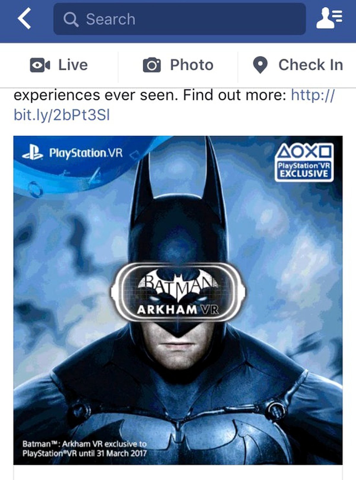 Попутно выяснилось, что Batman: Arkham VR будет временным эксклюзивом для PlayStation VR - информация об этом размещена на обложке игры, выложенной в Facebook Sony PlayStation. Значит ли это, что со временем Batman: Arkham VR выйдет не только на PlayStation 4?