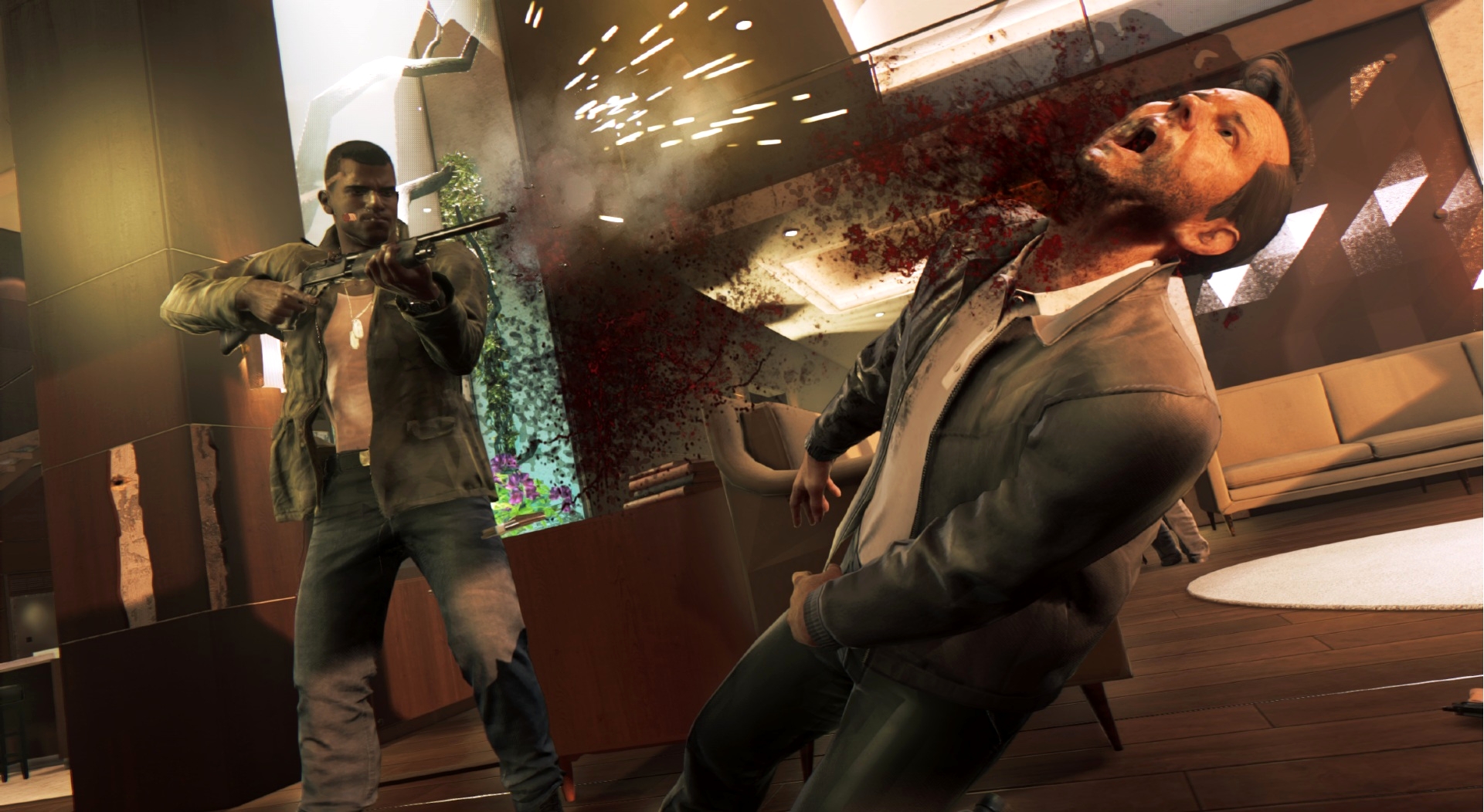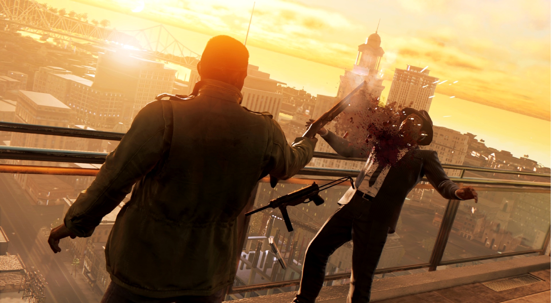 Но самое важное – стрельба. Ведь главный герой – бывший спецназовец, обладающий соответствующей подготовкой. Наш протеже обладает поистине исполинскими габаритами: крепкий, широкоплечий мулат 2-ух метрового роста с выдающейся физической силой – гангстеров можно разделывать буквально голыми руками, какие ещё стволы? Арсенал даст разгуляться не на шутку: вы найдёте оружие на любой вкус, от револьверов до гранатомётов. И, подобно старине Максу Пэйну, Клэй может носить собой лишь два ствола – пистолет да винтовку. Оружие звучит как надо, дробовики бахают под стать настоящим, а уж как от выстрелов разлетаются тела противников – любо дорого смотреть.