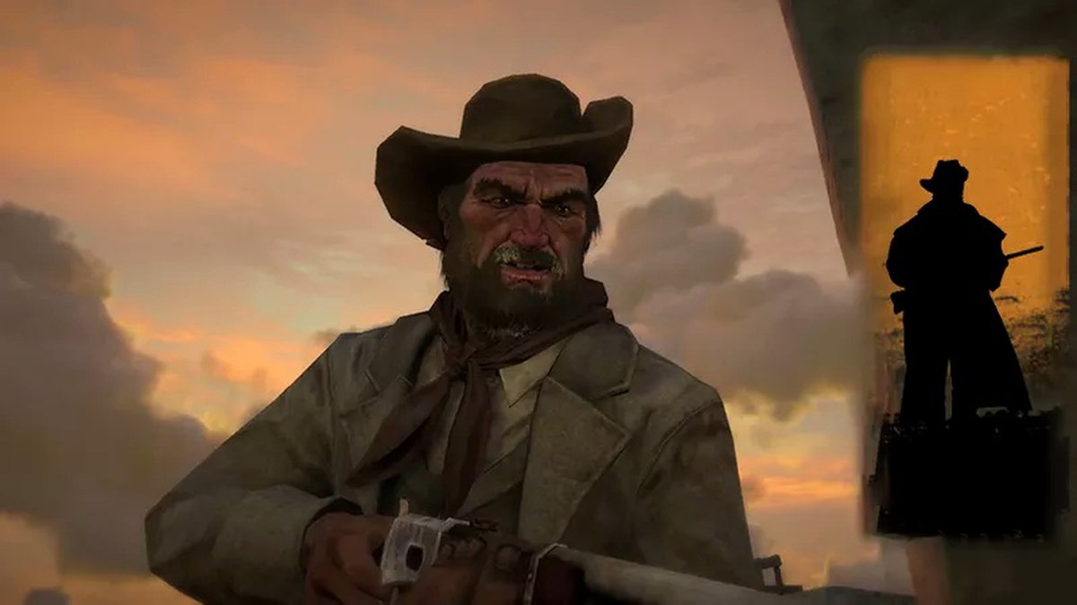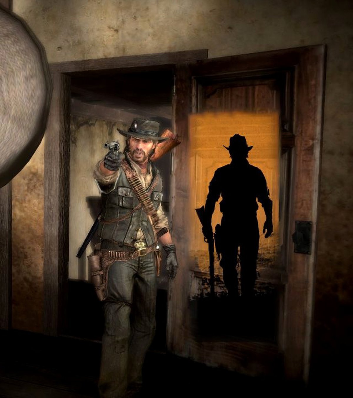 Силуэт правее Марстона напоминает Билла Уильямсона, еще одного персонажа Red Dead Redemption. Характерная шляпа, длинной пальто, хват винтовки - если это не Билл, то в Rockstar, определенно, работают те еще шутники.