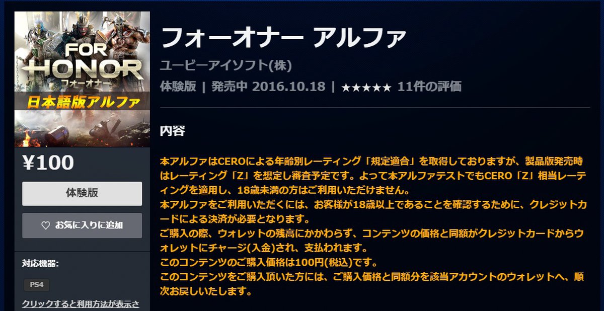 Возможно, публичный бета-тест For Honor не за горами. Этим утром в японском PlayStation Store была альфа-версия игры, доступная всем желающим. Правда, для получения доступа предлагалось заплатить 100 йен (около 60 рублей) - не самая обычная практика в случае с тестовыми версиями.