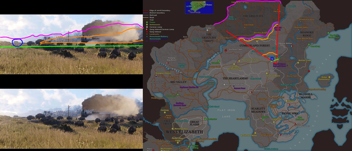 В середине апреля этого года на форуме NeoGAF была опубликована, как утверждалось тогда, настоящая карта игрового мира Red Dead Redemption 2. После недавнего показа трейлера игры один из фанатов решил найти в показанных геймплейных кадрах привязки к этой карте - и ему это вроде бы удалось.