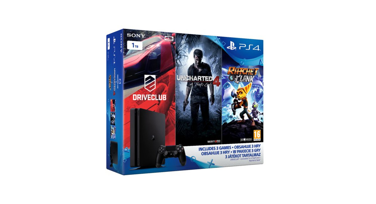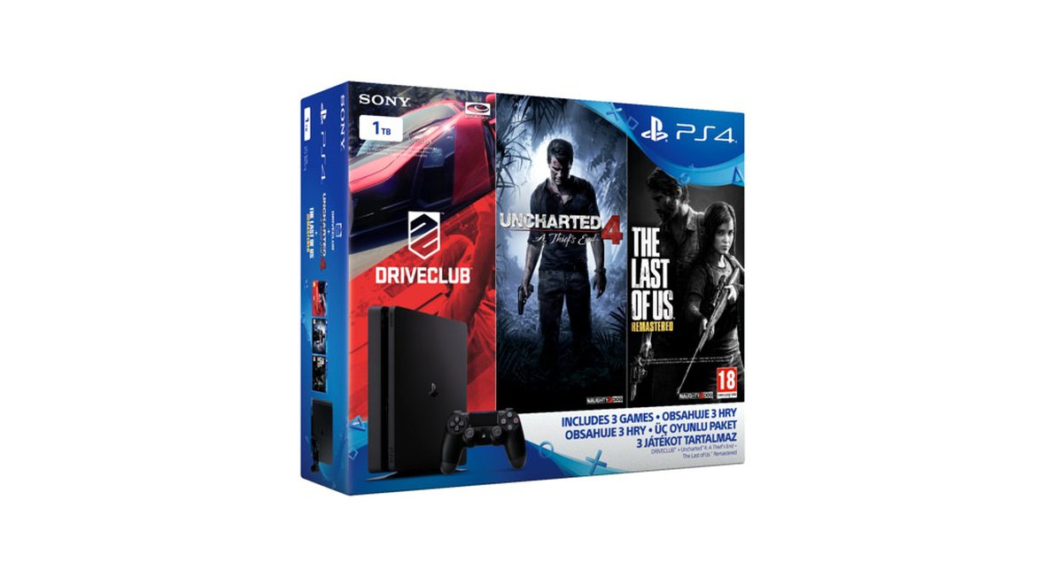 В первый бандл войдет PlayStation 4 Slim с жестким диском на 1 Тб и три игры: Uncharted 4: A Thief’s End, The Last of Us: Remastered и Driveclub.