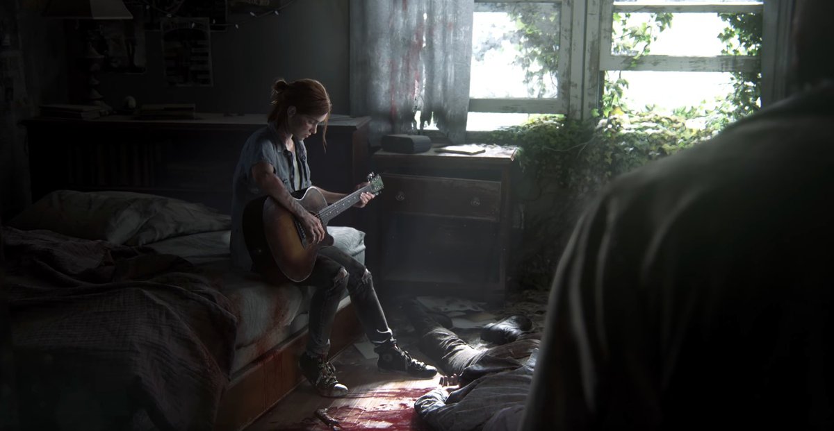 Приверженцы этой теории предлагают задуматься о том, что вообще происходит в трейлере: Элли перебила несколько человек, была легко ранена, а затем просто села поиграть на гитаре, глядя на тело одного из убитых и чуть ли не стоя в луже его крови? Действительно, выглядит слегка странно - все ли у нее в порядке с головой?