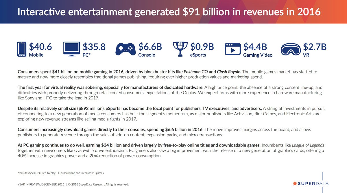 SuperData выпустила короткий обзор игрового рынка в 2016 году