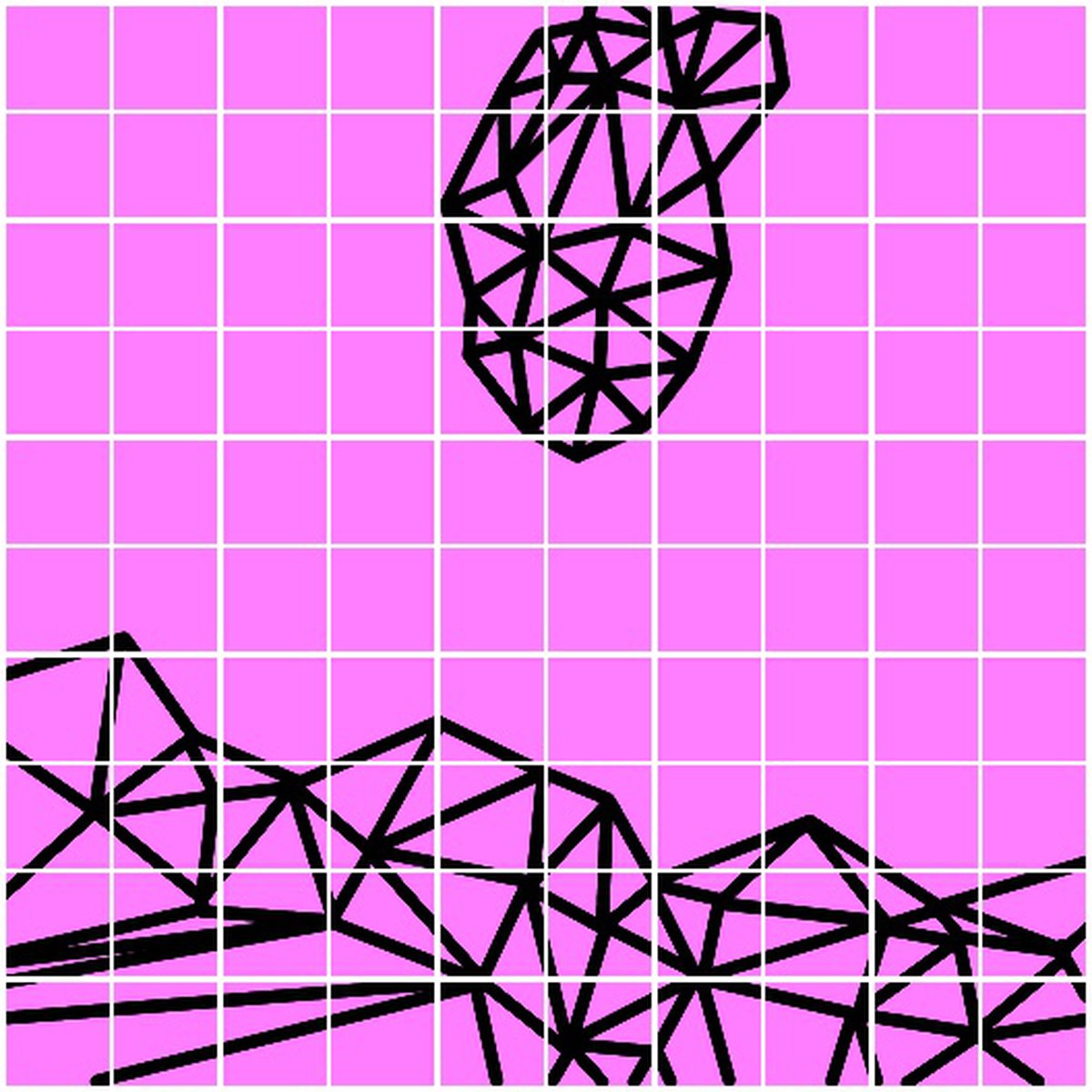 Итак, представим, что у нас есть простая сцена взрыва: внизу земля, вверху летит подброшенный взрывом осколок. На уровне полигонов такая сцена выглядеть примерно вот так:
