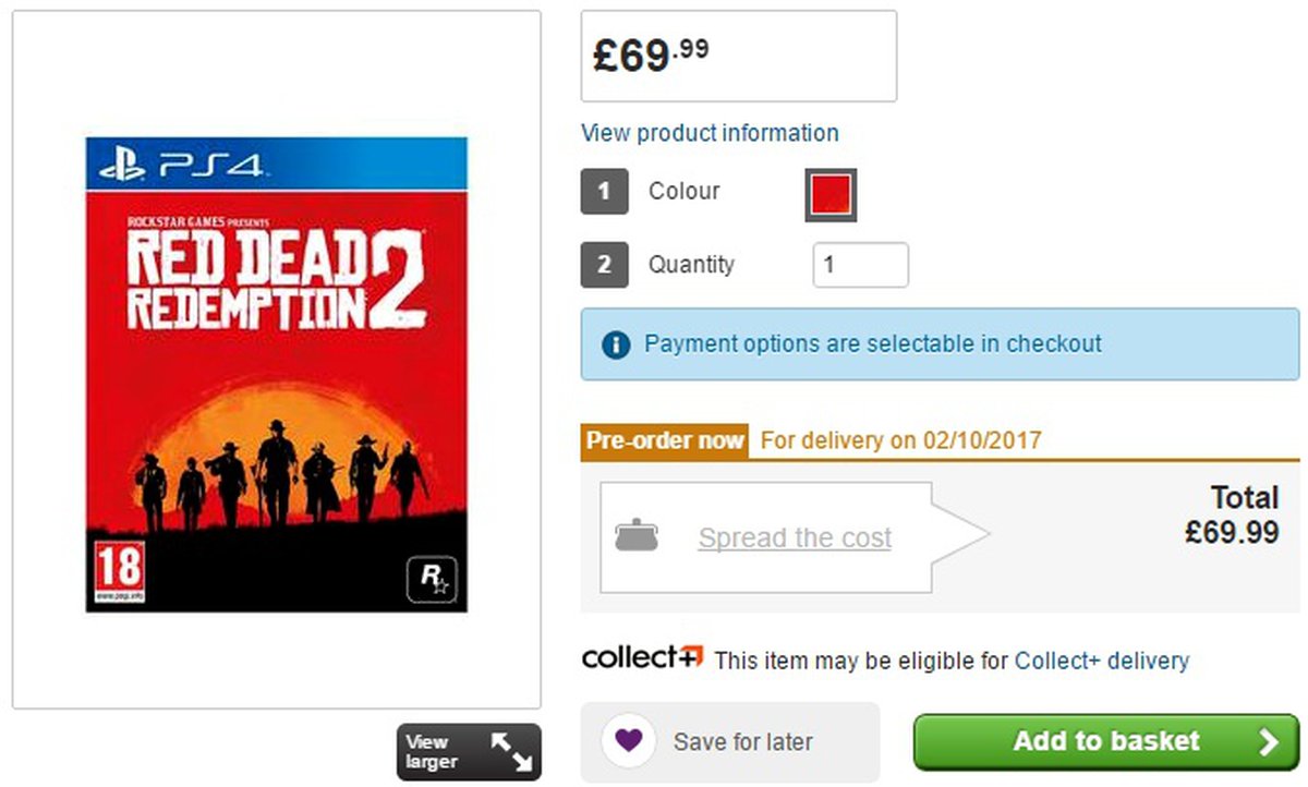 Это, кажется, первый раз, когда ритейлер называет предположительную дату выхода Red Dead Redemption 2. Верна ли она? Скорее всего, нет: помимо очевидной причины - инсайдеры молчат, а второстепенный магазин уже в курсе - не стоит забывать и о привычке Rockstar задерживать выход своих игр.