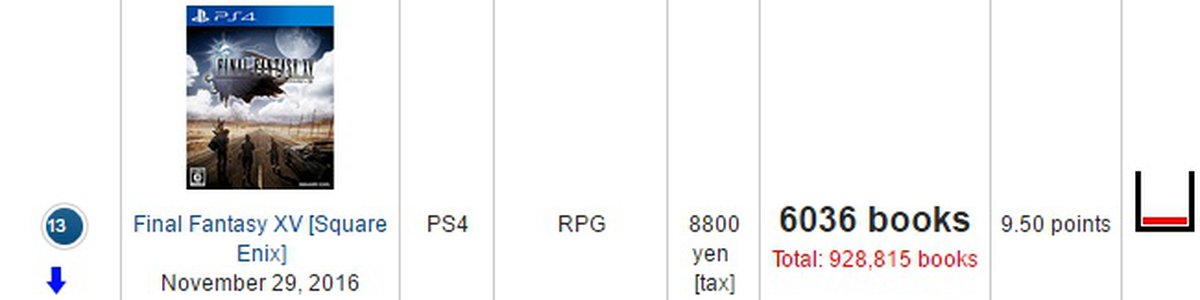 Таким образом, в Японии была реализована примерно одна шестая часть всех отгруженных копий Final Fantasy XV. В начале января компания Square Enix сообщила, что отгрузки ритейлерам и цифровые продажи игры превысили 6 миллионов копий.