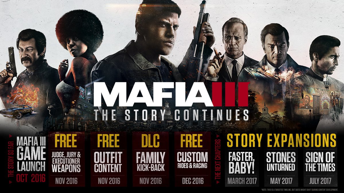 Разработчики Mafia 3 раскрыли приблизительное расписание выхода сюжетных дополнений к игре. Первое из этих дополнений, "Faster, Baby!", выйдет до конца марта 2017 года.