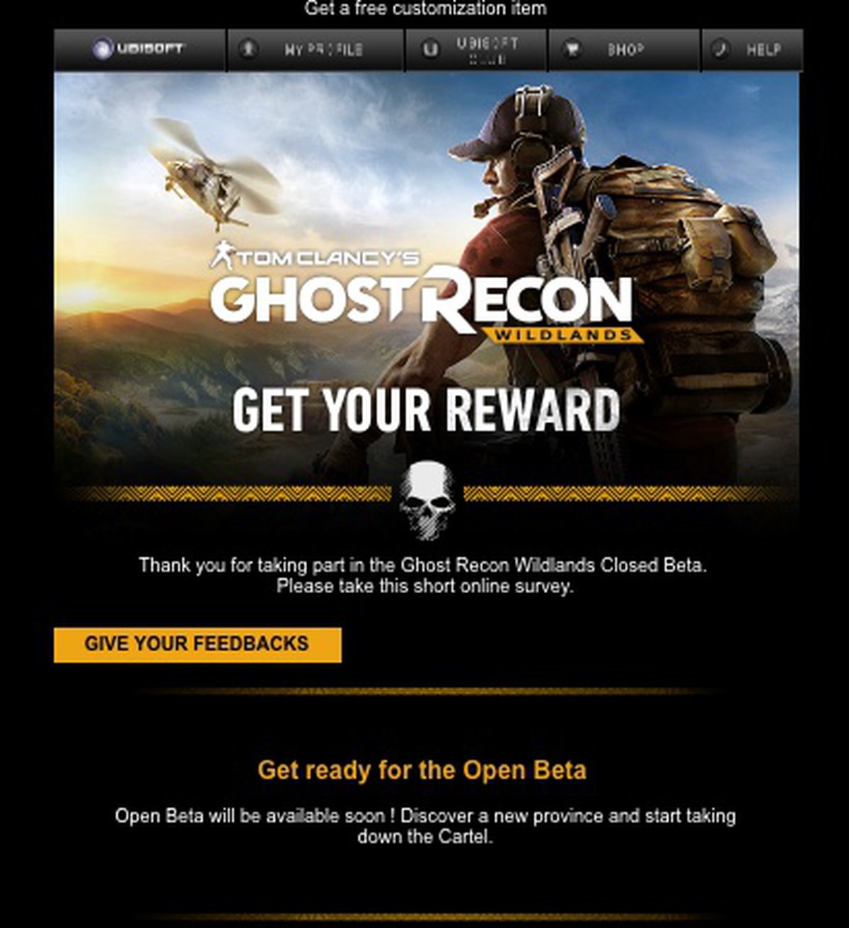 Некоторые игроки на Reddit и на официальном форуме Wildlands сообщают о получении писем от Ubisoft, в которых издатель благодарит за участие в закрытом бета-тесте игры и сообщает, что открытая бета даст доступ к новой провинции.