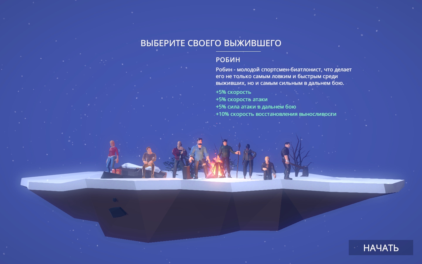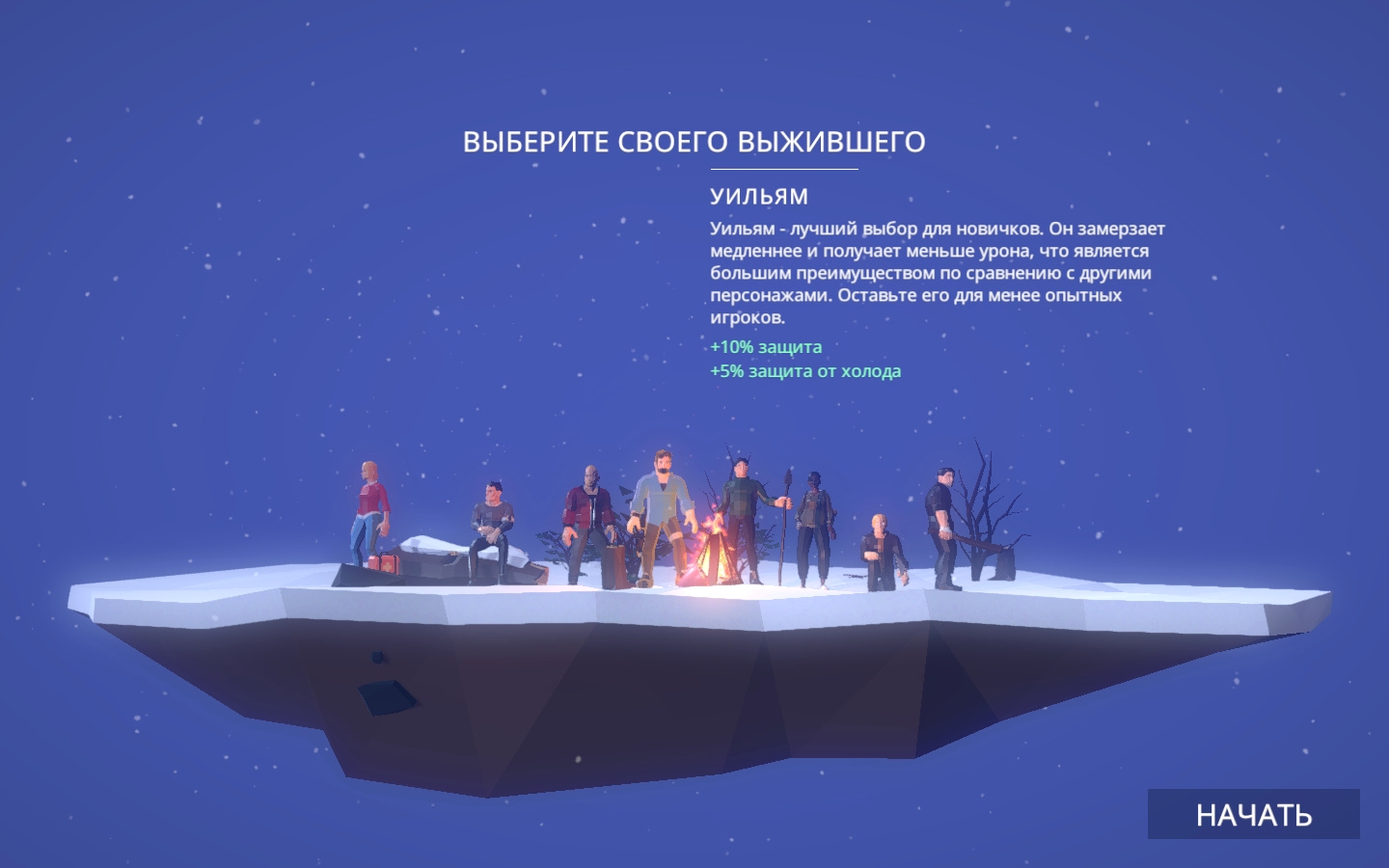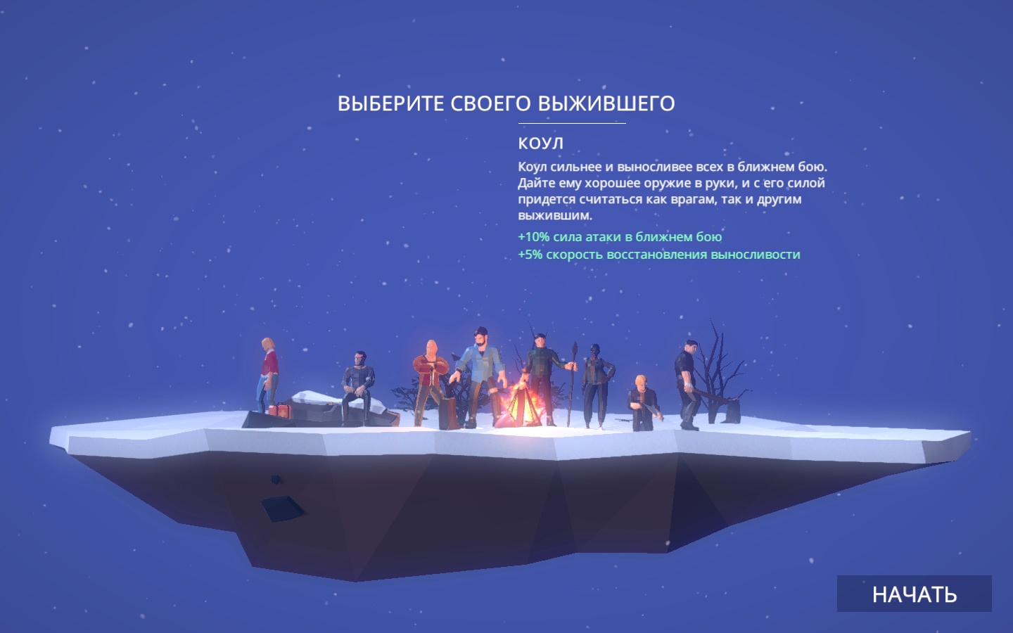 Интересная ситуация наблюдается с персонажами, выбираемыми при старте игры. На откуп игроку представляются восемь кандидатов, каждый из которых, если верить разработчикам, обладает уникальными навыками: Уильям не слишком боится холода; Коул физически сильнее своих напарников; ловкач Робин быстрее всех восстанавливает выносливость и так далее. Так гласит экран выбора. На деле же их преимущества едва заметны, особенно при одиночной игре. А вот в кооперативе процесс выживания заметно преображается.