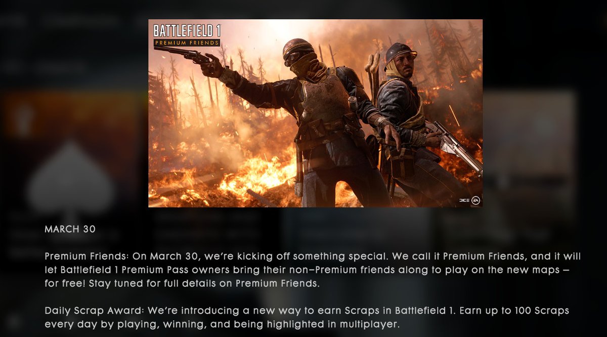 С завтрашнего дня в Battlefield 1 появится новая возможность, особенно интересная игрокам, до сих пор не купившим Premium Pass. DICE собираются внедрить в игру функцию под названием Premium-друзья.
