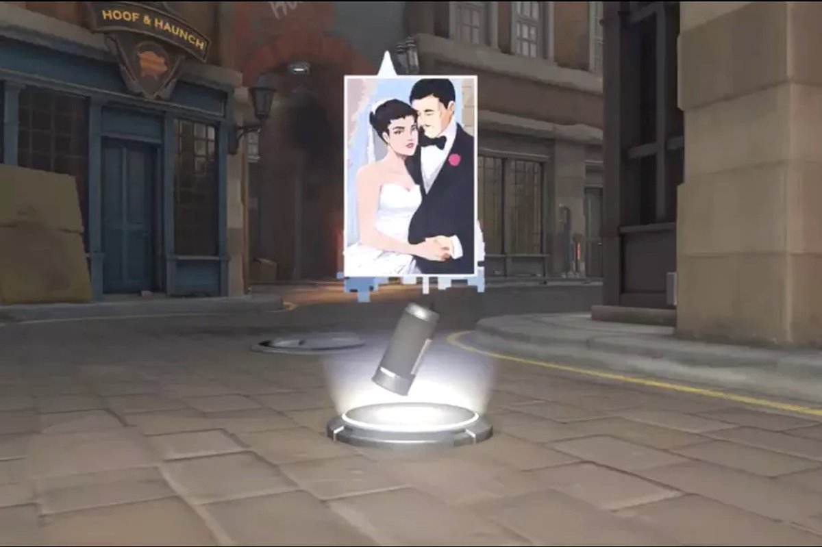 Этот спрей - явная отсылка к прошлому Вдовы, в далекие счастливые времена носившей имя Амели Лакруа. Журналисты считают - и мы с ними согласны - что здесь изображена сама Амели и ее муж, Жерар Лакруа - агент Overwatch.
