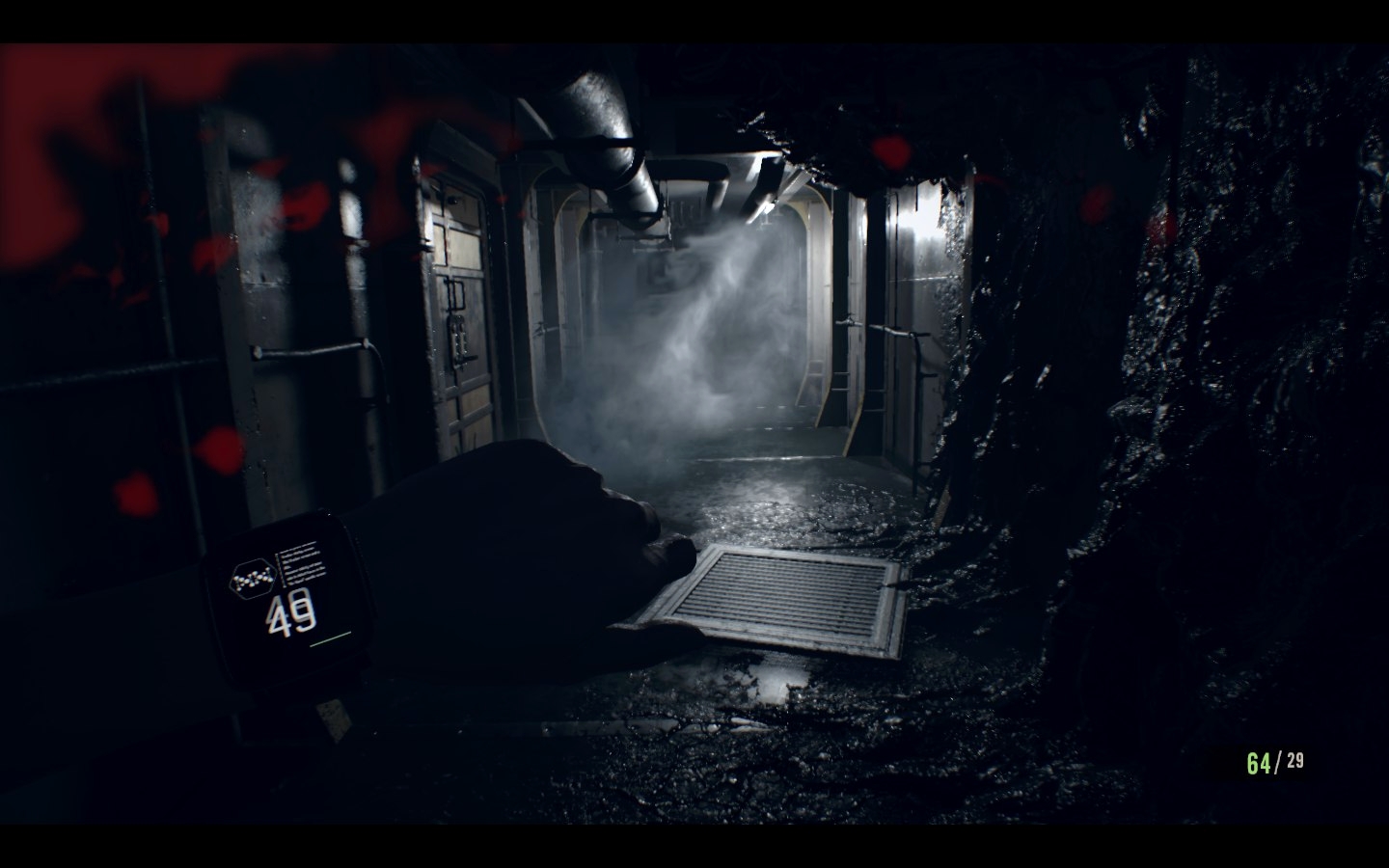 Как только Итан/Майлз пробирается внутрь гостевого домика/здания, его взору представляется не самая приятная картина: повсюду мрак, чернуха, вонь и страх. В этот момент булки нашего протагониста начинают сжиматься с огромным давлением, а спустя какое-то время блужданий героя хватает неизвестный мужик и вырубает в бессознательное состояние.