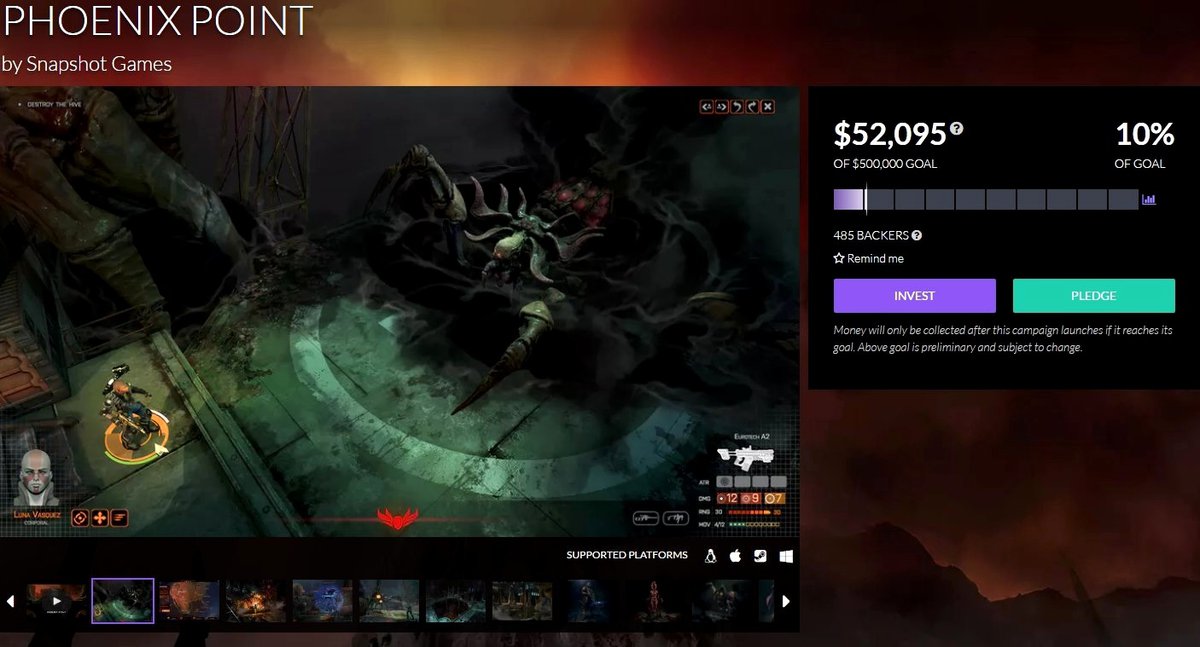 Кампания по сбору средств на разработку Phoenix Point уже запущена, однако сейчас в ней могут принять участие только пользователи Fig, проспонсировавшие хотя бы одну игру. Судя по скриншоту страницы кампании, Snapshot Games планируют привлечь как минимум $500 тысяч.