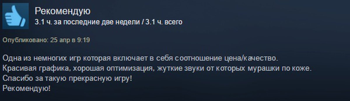 Авторы очень многих русскоязычных положительных отзывов в первую очередь отмечают привлекательную цену Outlast 2 (в Steam она стоит всего 499 рублей), но на цене плюсы игры только начинаются. Опасения некоторых фанатов оказались беспочвенными: разработчики до последнего не открывали предзаказы не из-за плачевного состояния игры.