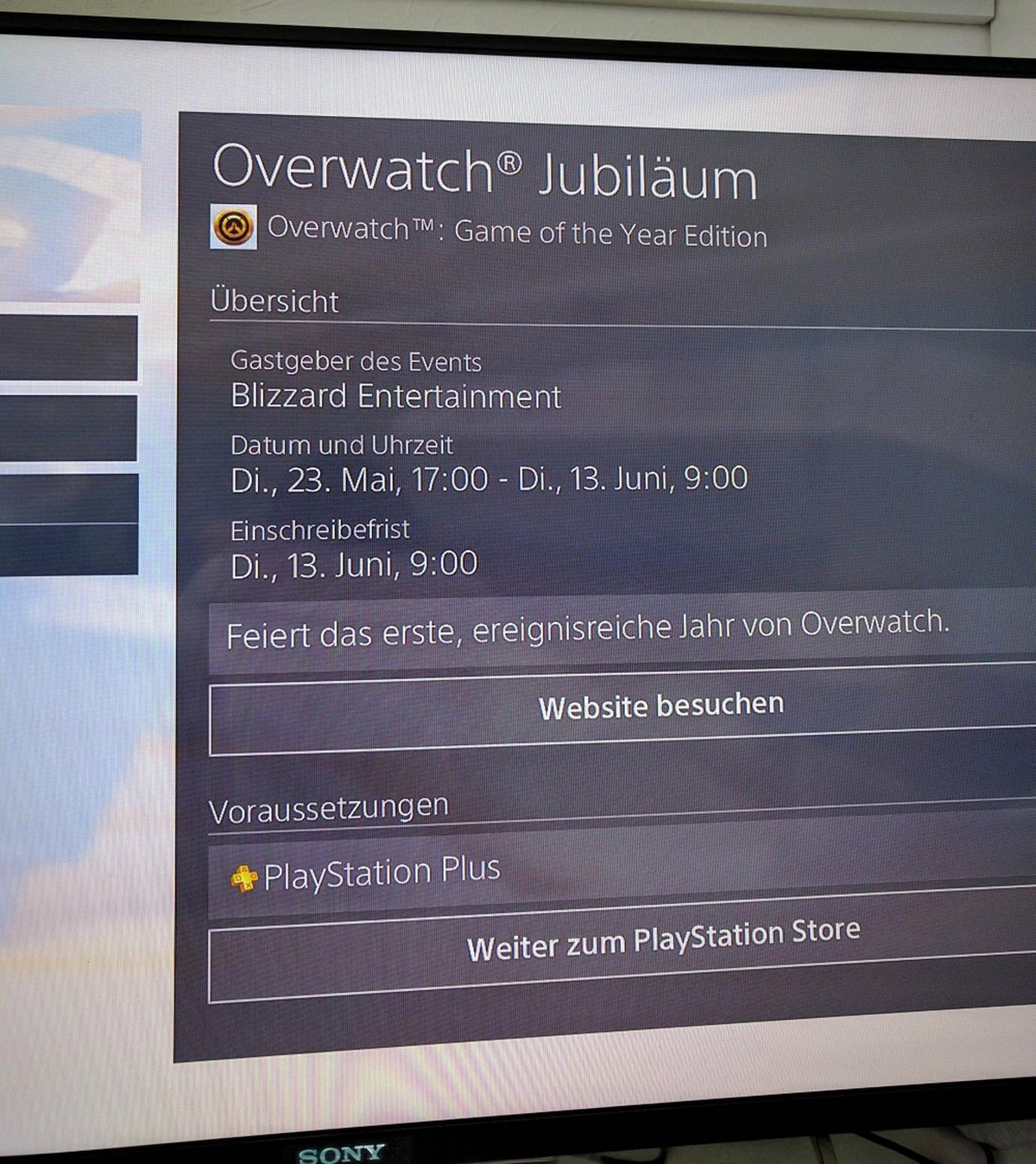 На Reddit выложена фотография немецкой страницы GOTY-издания Overwatch, где указано время начала празднования годовщины игры: 19:00 по местному времени, 18:00 по Москве.