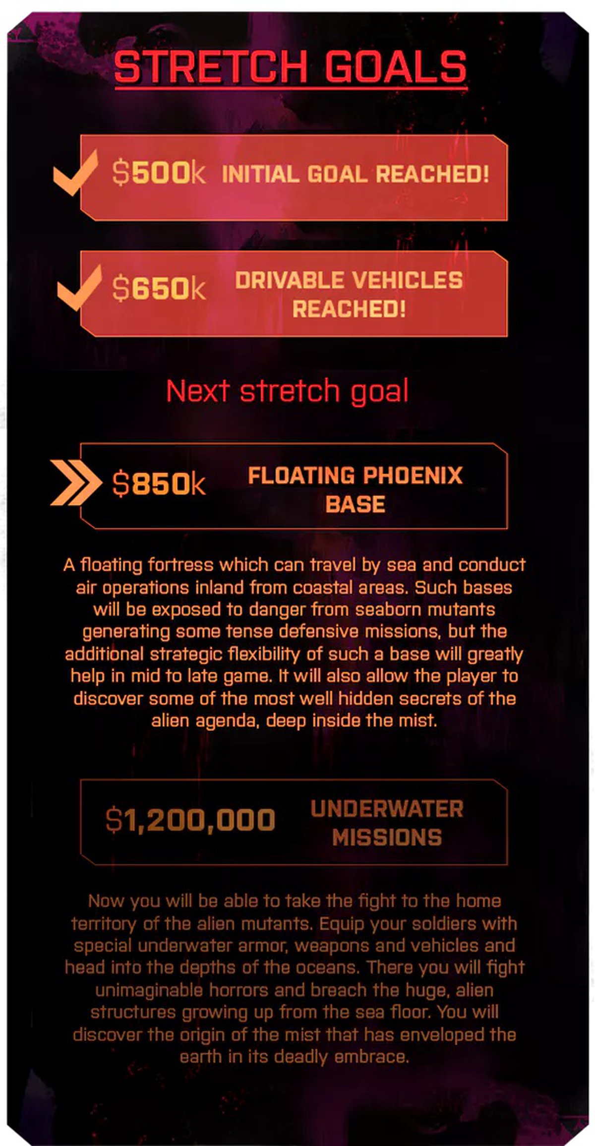 Впрочем, создатели игры не унывают. Они уже анонсировали новую цель кампании: если удастся привлечь $1.2 миллиона, то в Phoenix Point появятся миссии под водой - почти как в X-COM: Terror From The Deep. Увы, скорее всего этого не произойдет. До конца кампании остается 9 с половиной дней, такими темпами Snapshot Games не удастся привлечь и $100 тысяч.