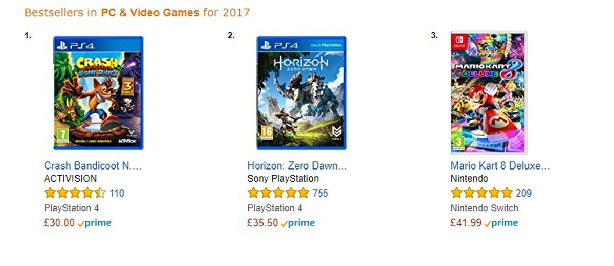 В топе Amazon UK Crash Bandicoot N. Sane Trilogy обошел даже Horizon Zero Dawn, Mario Kart 8 и The Legend of Zelda: Breath of the Wild, став самой продаваемой игрой 2017 года на PC и консолях. Стоит отметить, что все перечисленные игры в разное время возглавляли топы GfK Chart-Track.