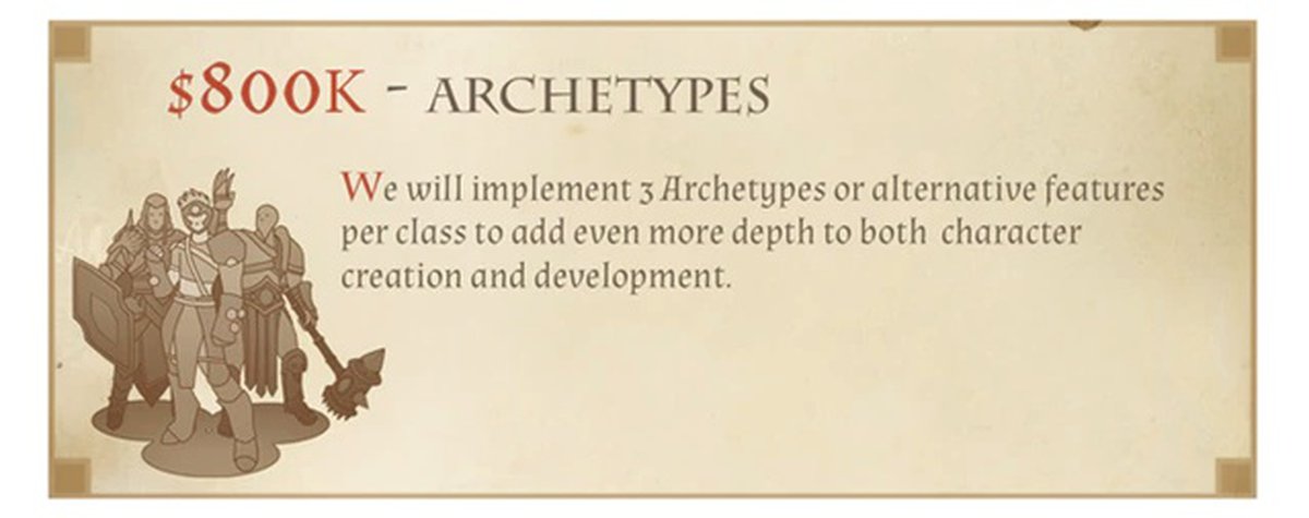 С помощью архетипов игрок может создать мага, владеющего луком, или клерика, специализирующегося на призыве разнообразных существ. У некоторых классов (например, чародеев) не будет архетипов: вместо них разработчики предложат несколько школ магии не выбор или другие альтернативные возможности.