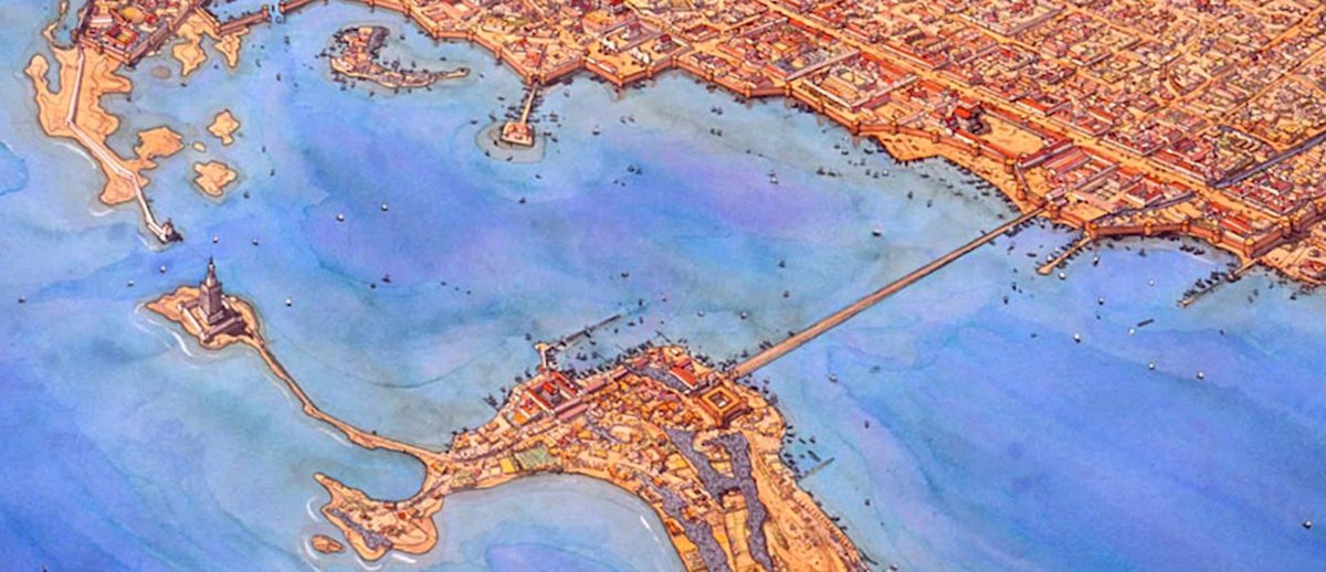 Трудности были и с воссозданием знаменитых построек тех времен. Если Александрийский маяк выстоял до XIV века нашей эры и неплохо описан, то Александрийской библиотеке повезло не так сильно: она была утрачена в 400-х годах нашей эры. Как быть?