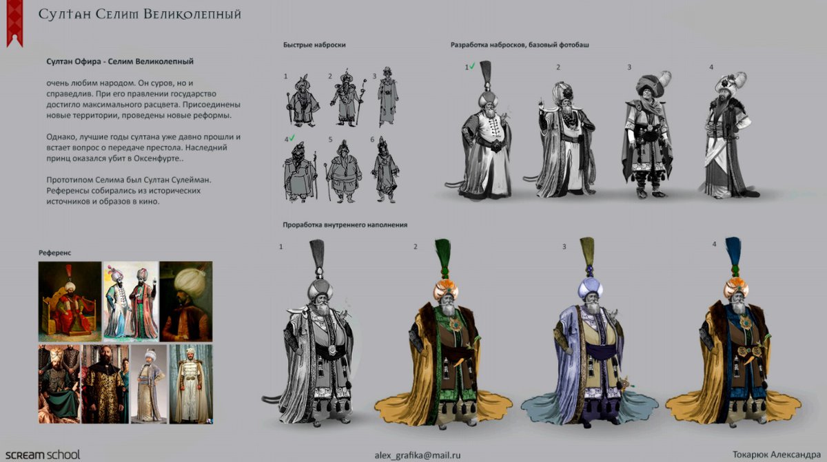 Прототипом повелителя Офира, султана Селима Великолепного, стал сам Сулейман I Великолепный, один из самых известных правителей Османской империи. Султан у Александры получился очень солидный.