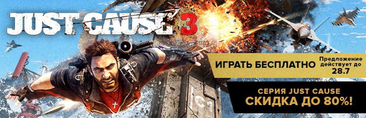 До завершения бесплатных выходных Just Cause 3 продается со скидкой в 25% - игру можно купить за 274 рубля. Сборник Just Cause 3 XL, в который также входят три дополнения, отдают за 399 рублей. Обычно он стоит в 4 раза дороже.