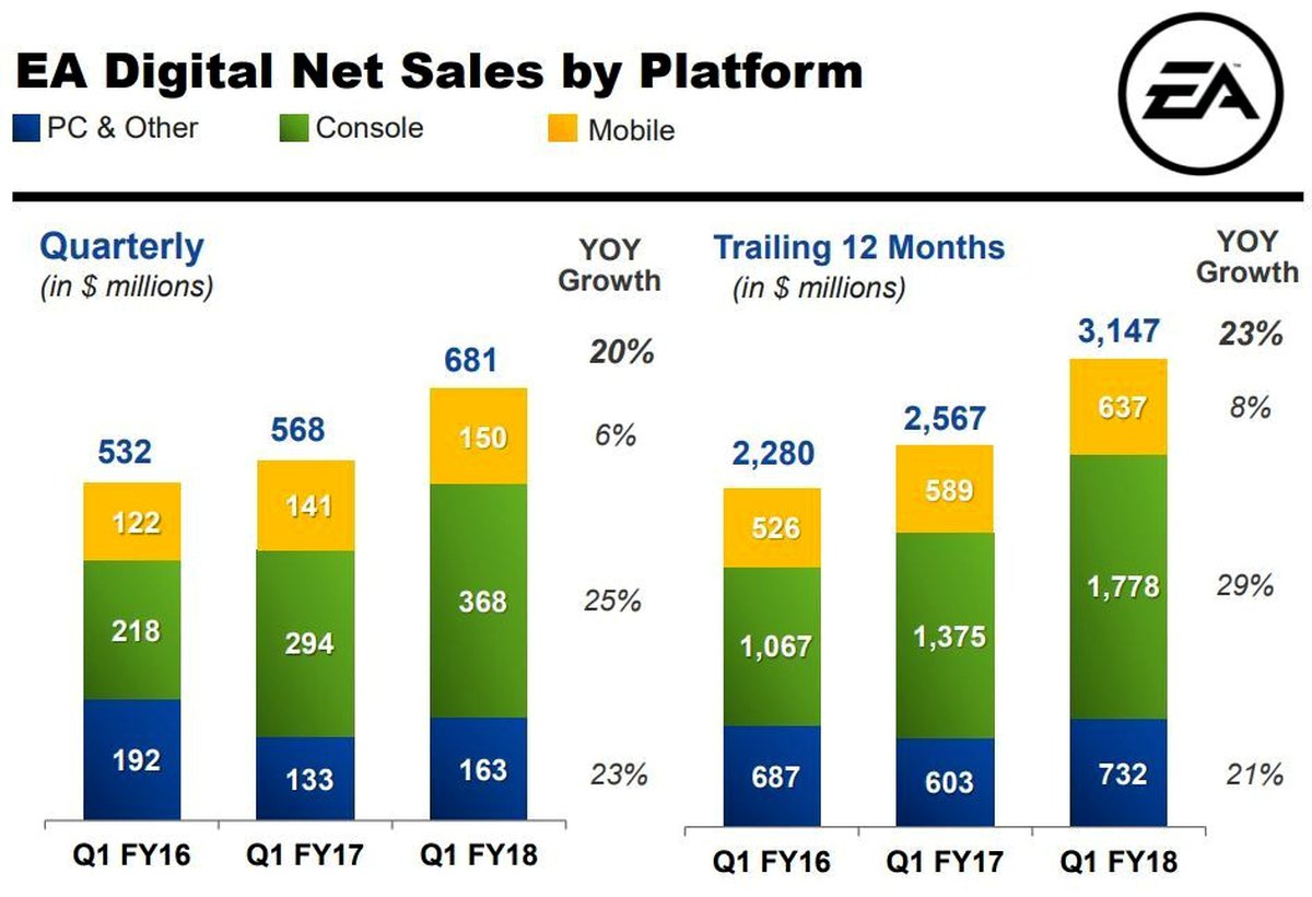 Издатель Electronic Arts опубликовал отчет за первый квартал 2018 финансового года, закончившийся 30 июня 2017 календарного года. Компании удалось достичь очень неплохих результатов.