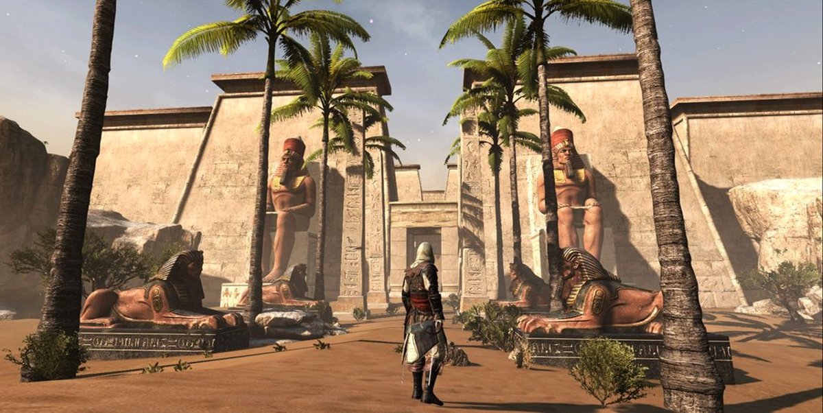 По всей видимости, это реальный рендер на старой, еще не доработанной версии движка Anvil, использовавшейся в Black Flag. Сейчас графика в Assassin’s Creed: Origins выглядит куда лучше. Жесдон пишет, что использует изображение как фон для рабочего стола; увы, Жан так и не выложил картинку в большом разрешении.
