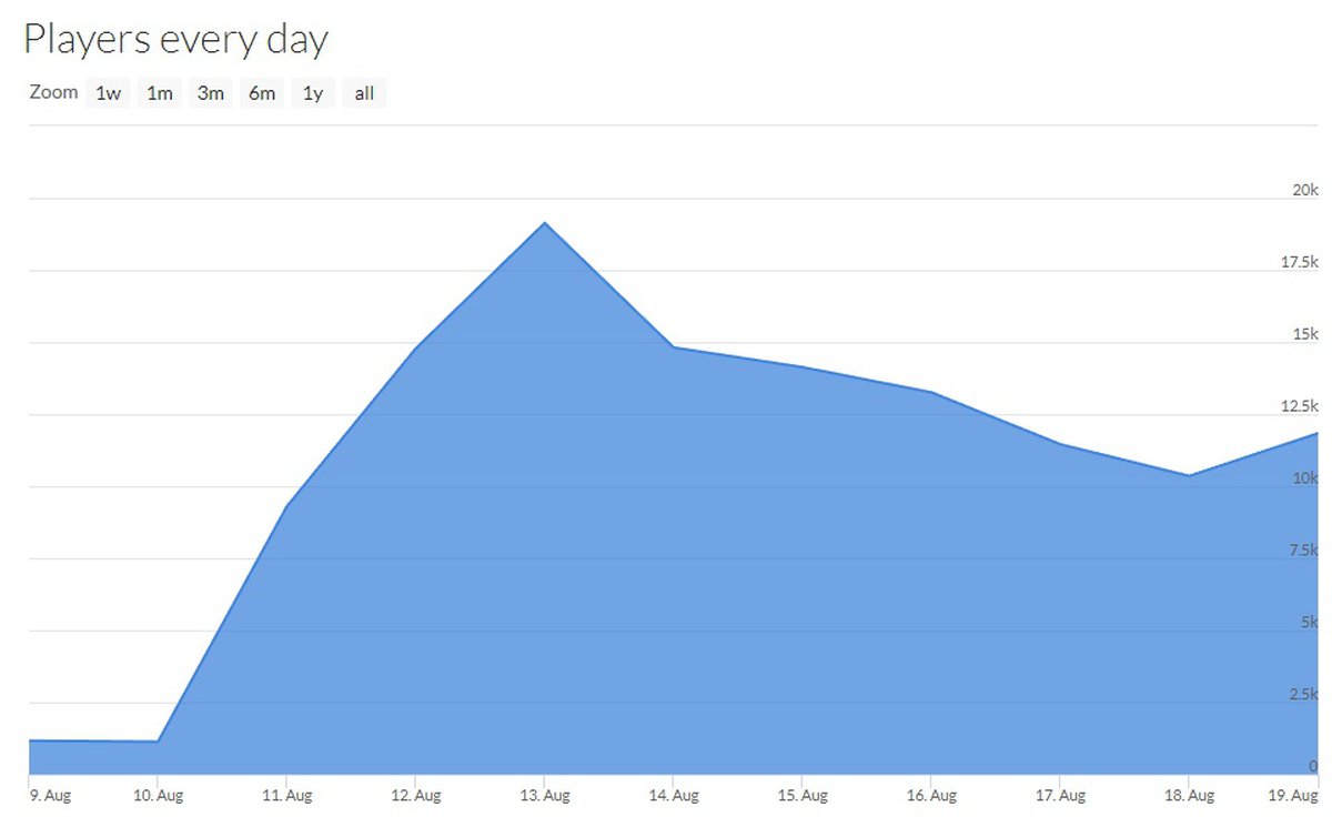 С Atlas Rises наблюдается другая картина. В прошлую субботу, 12 августа, пиковый онлайн No Man’s Sky в Steam был равен 14780 игрокам. Вчера число активных игроков достигало 11835, падение по сравнению с первой субботой составило около 20%.