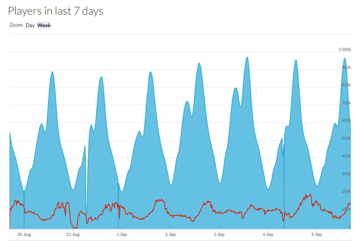 В последние недели Playerunknowns Battlegrounds стабильно возглавляет дневной топ Steam по максимальному пиковому онлайну. Игре осталось совсем немного до поколения еще одной круглой цифры: в ближайшие выходные пиковый онлайн в PUBG наверняка превысит 1 миллион игроков.